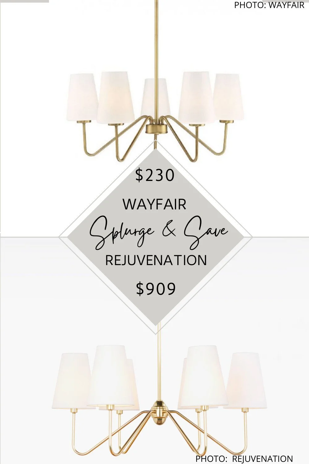SPLURGE AND SAVE: REJUVENATION BERKSHIRE 6 ARM CHANDELIER WITH LINEN SHADES DUPE