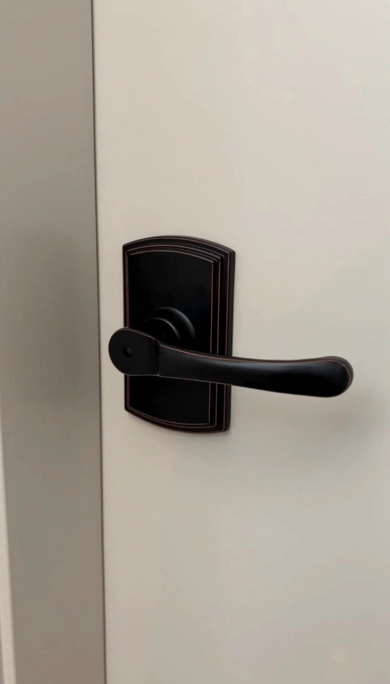 These interior door handles come in three finishes: black, bronze, and satin nickel. We chose the bronze finish, which adds warmth and depth that works beautifully with neutral paint colors and modern organic decor.